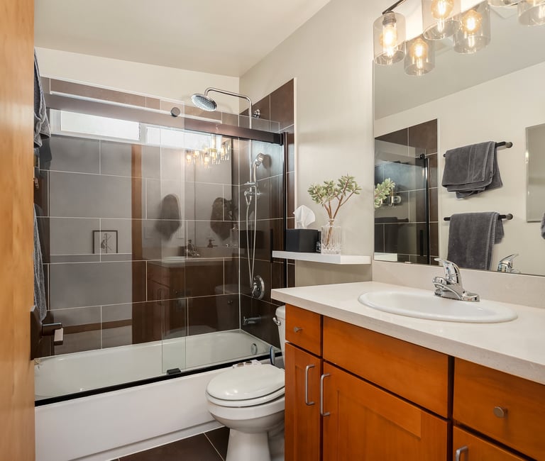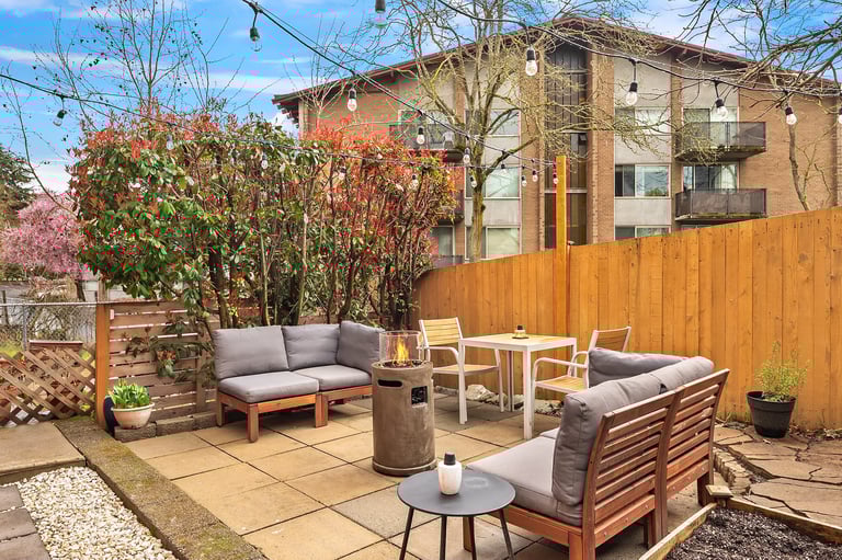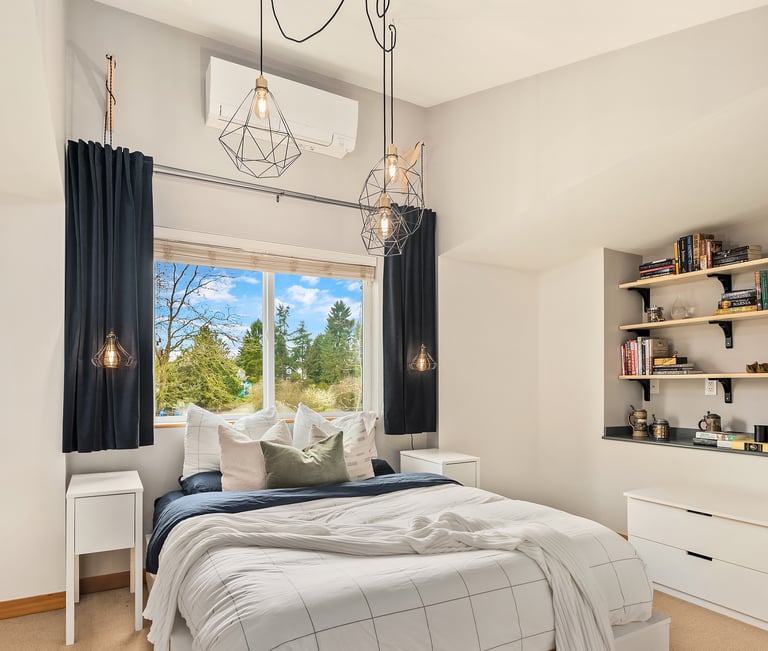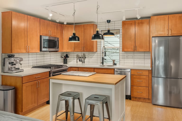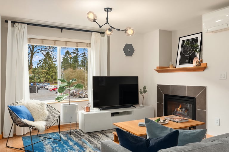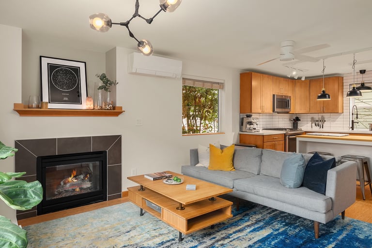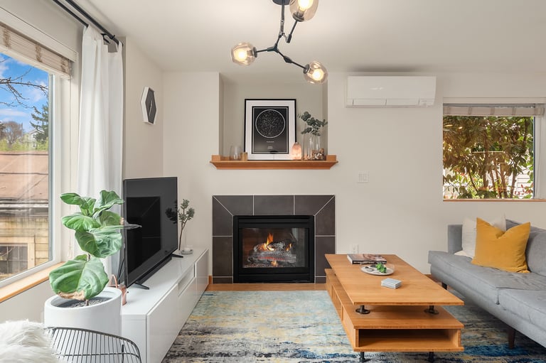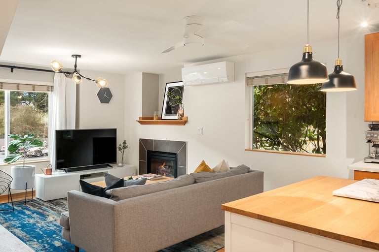 This project was a work of love, updating a small townhouse that was built in 2010 and needed some modernizing. New paint, backsplash, lighting, furniture, appliances, plumbing fixtures, mini split heat pumps, and exterior landscaping are only some of the updates that were made.